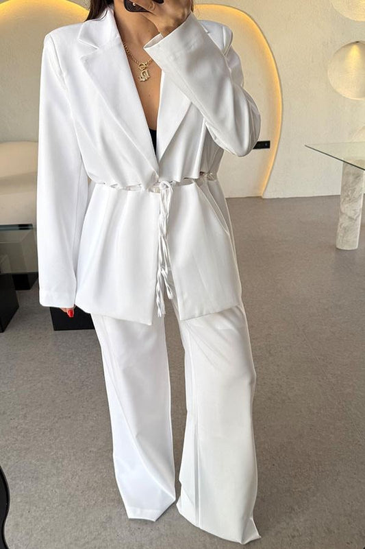 3 AL 2 ÖDEGael Beyaz Pantolon Blazer Ceket Takım