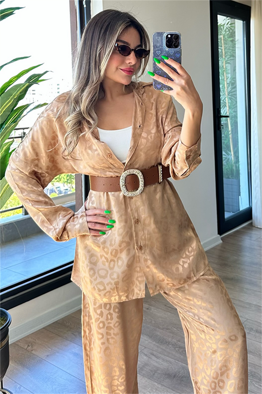 3 AL 2 ÖDEGalia saten dokulu jakarlı takım - Karamel