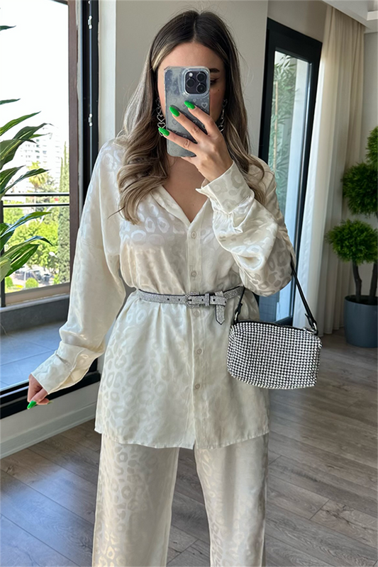 3 AL 2 ÖDEGalia saten dokulu jakarlı takım - Krem