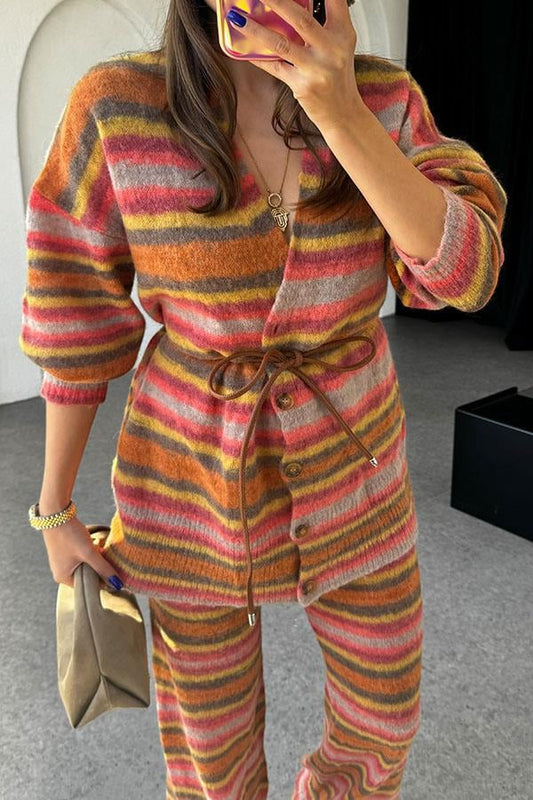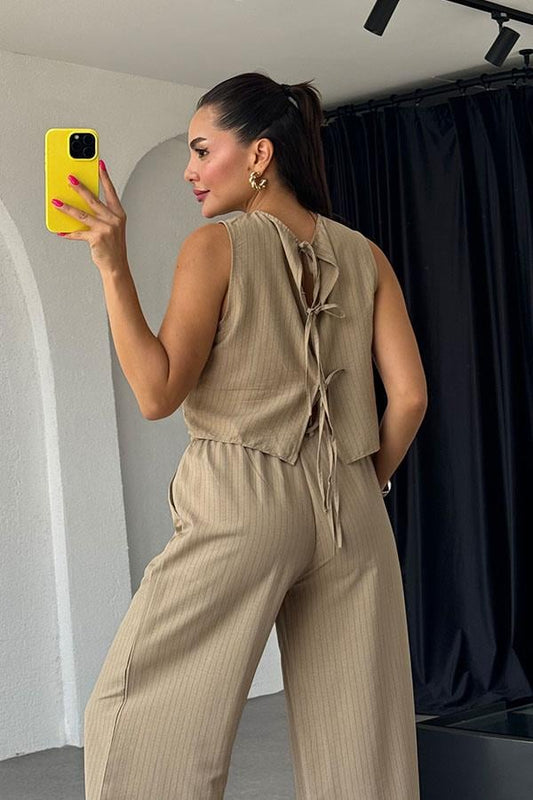 3 AL 2 ÖDEAliza Bağlamalı Çizgili Tensel Takım-Camel