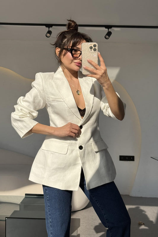 3 AL 2 ÖDEAlmeida Beyaz Keten Ceket