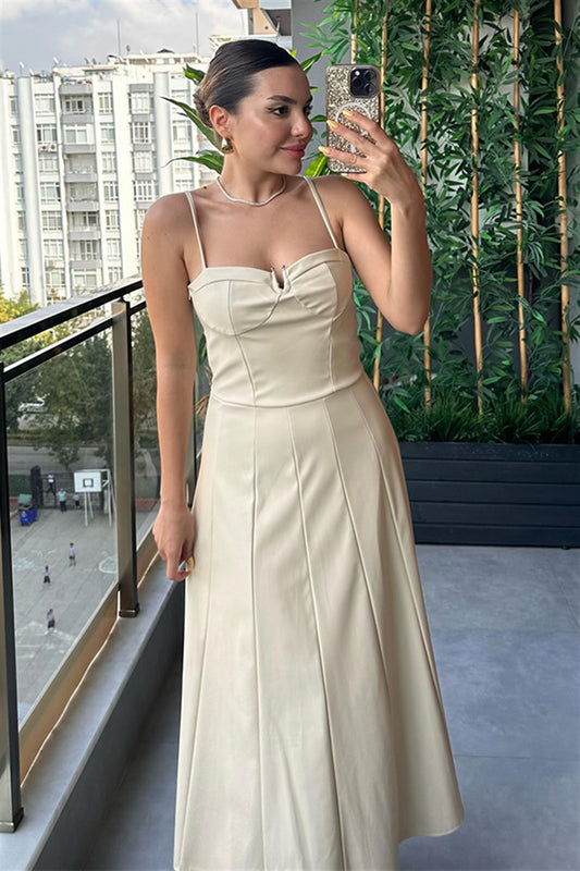 3 AL 2 ÖDEAloha Krem Deri Maxi Elbise