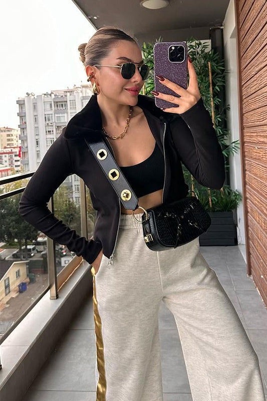 Allison Fermuarlı Body Pantolon Takım - Siyah