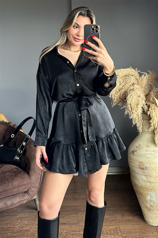 3 AL 2 ÖDEAltı pileli siyah saten gömlek elbise