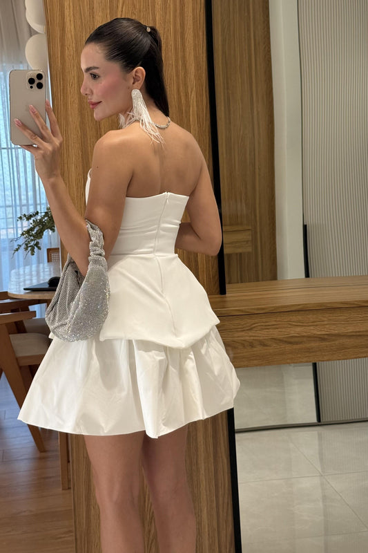 3 AL 2 ÖDEAlveta Beyaz Straplez Balon Elbise