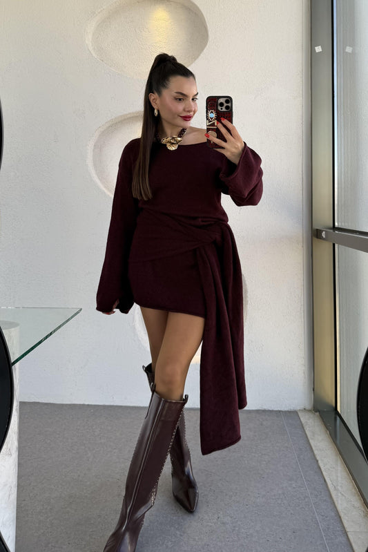 3 AL 2 ÖDEGlady Bordo İki Parça Triko Elbise