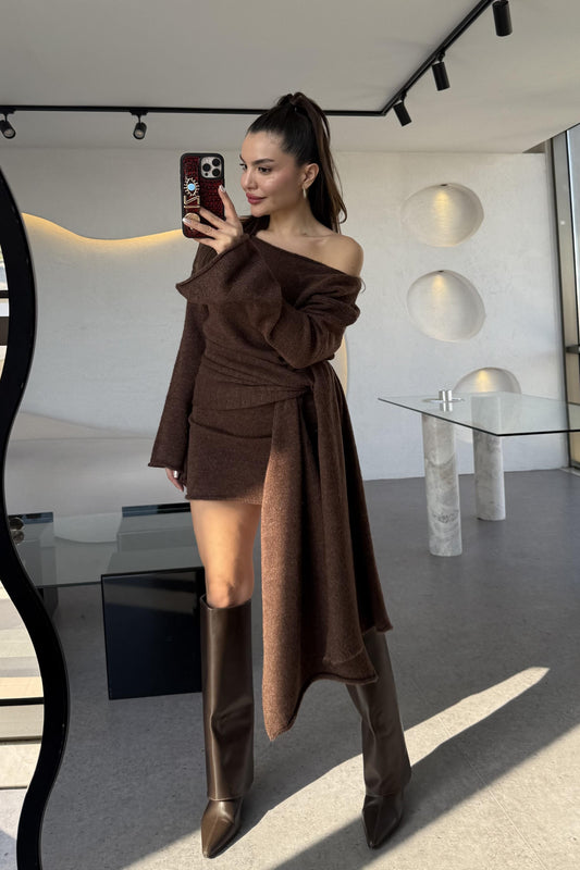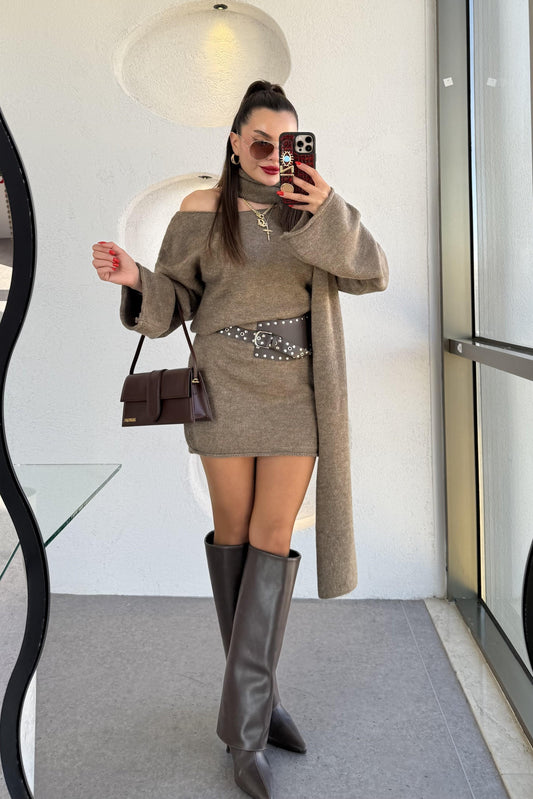 3 AL 2 ÖDEGlady Koyu Tarçın İki Parça Triko Elbise