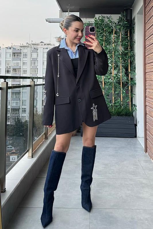 3 AL 2 ÖDEGlamour Yıldız Taş İşlemeli Blazer Ceket
