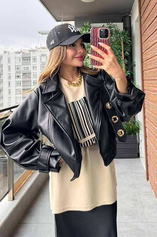 3 AL 2 ÖDEGlazia Siyah Deri Ceket