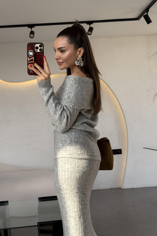3 AL 2 ÖDEGowse Gri Madonna Yaka Triko Takım