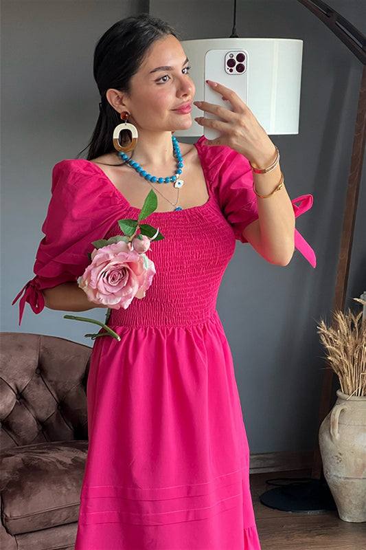 3 AL 2 ÖDEGrazia önü gipeli fuşya çan elbise