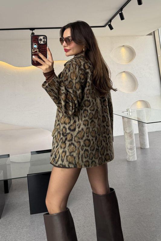 3 AL 2 ÖDEGremio Kahve Kaşe Leopar Ceket