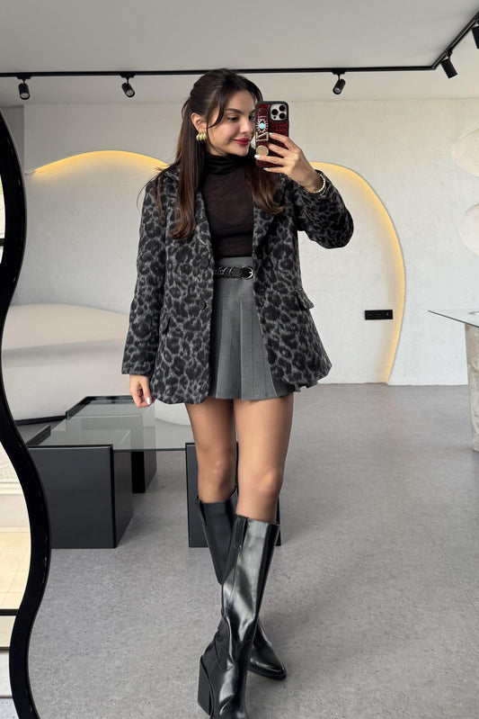 3 AL 2 ÖDEGremio Siyah Kaşe Leopar Ceket