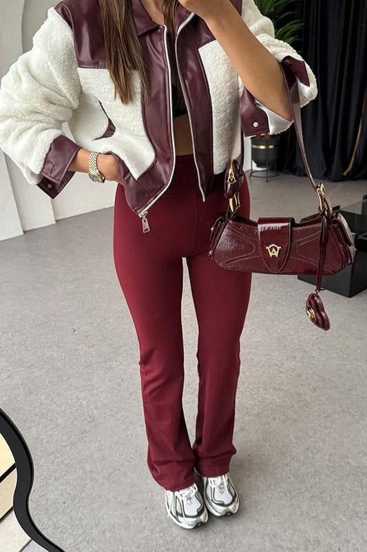 3 AL 2 ÖDEGrasso Teddy Bordo Deri Karışımlı Ceket