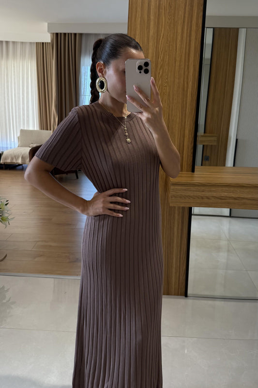 3 AL 2 ÖDEGwenn Kahve Fitilli Elbise
