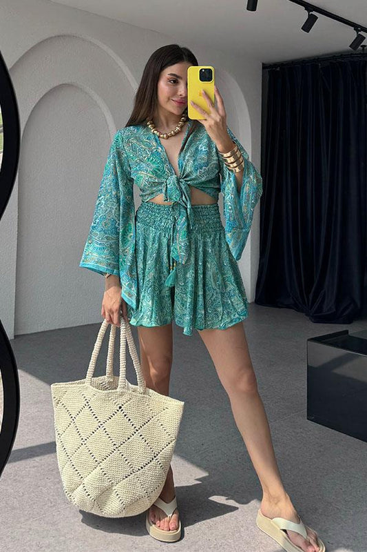 3 AL 2 ÖDEGypsy Etnik Desenli Şort Takım - Turkuaz