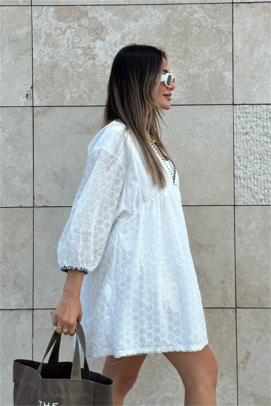 3 AL 2 ÖDEGüpür v yaka beyaz elbise