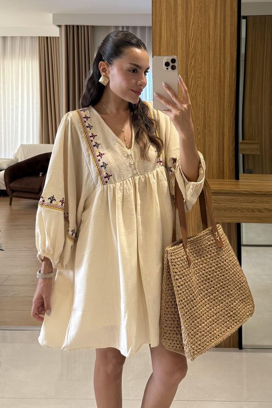3 AL 2 ÖDEAmbrose Keten İşlemeli Mini Elbise
