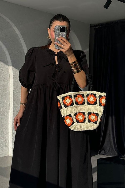 3 AL 2 ÖDEAmina Kurdele Detaylı Elbise-Siyah