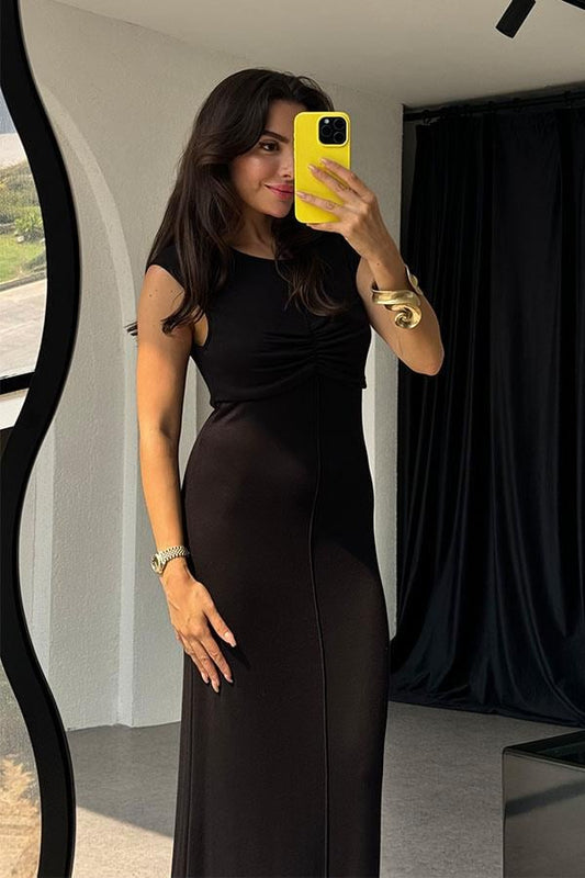 3 AL 2 ÖDEAmory Büzgülü Çımalı Elbise-Siyah
