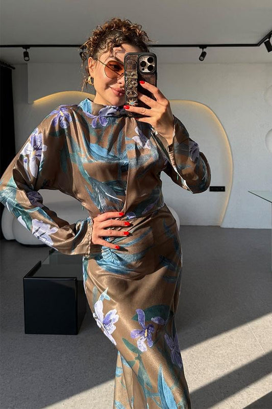 3 AL 2 ÖDEAnastasya Çiçek Desenli Saten Elbise