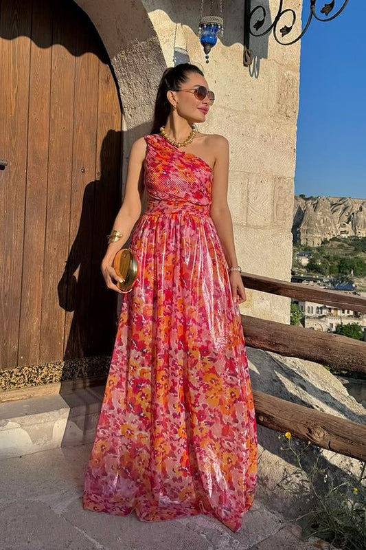 3 AL 2 ÖDEHasharia Parlak Tek Omuz Fuşya Elbise