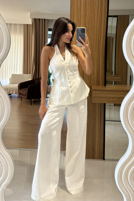 3 AL 2 ÖDEHauser Beyaz Keten Yelekli Takım