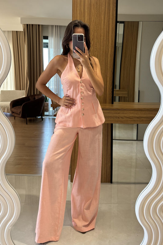 3 AL 2 ÖDEHauser Pembe Keten Yelekli Takım