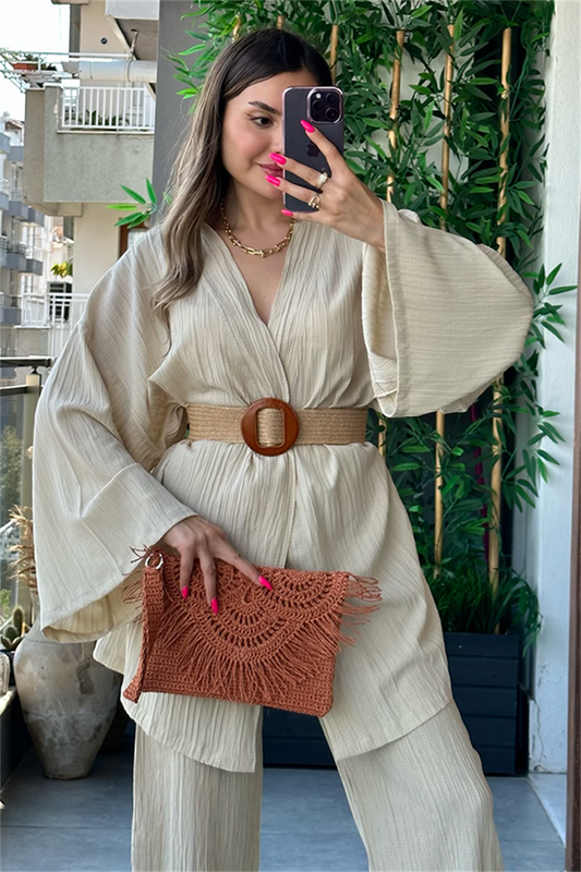 3 AL 2 ÖDEHavana kimonolu bohem takım - Bej