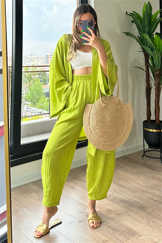 3 AL 2 ÖDEHavana kimonolu bohem takım - Fıstık yeşil