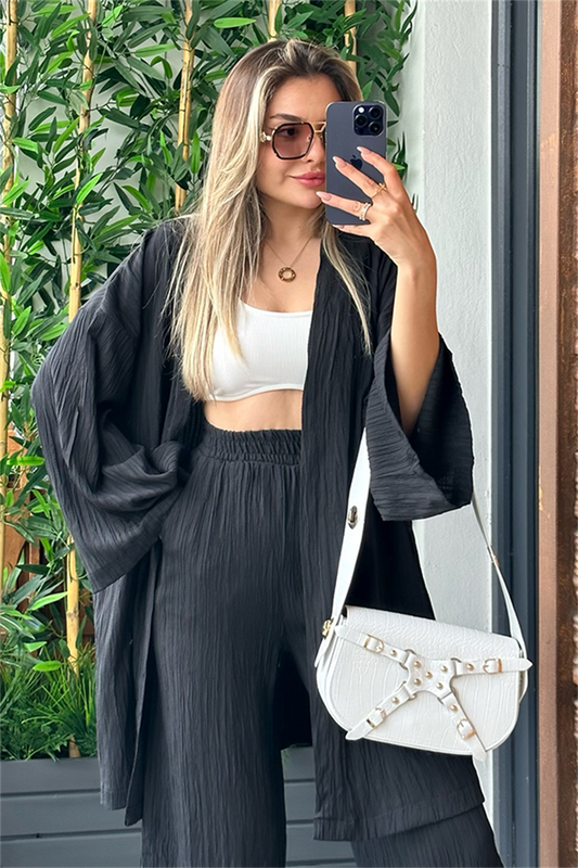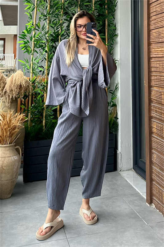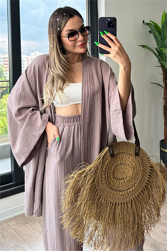 3 AL 2 ÖDEHavana kimonolu bohem takım - Füme