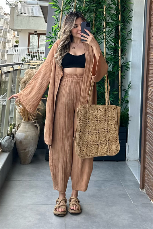 3 AL 2 ÖDEHavana kimonolu bohem takım - Karamel