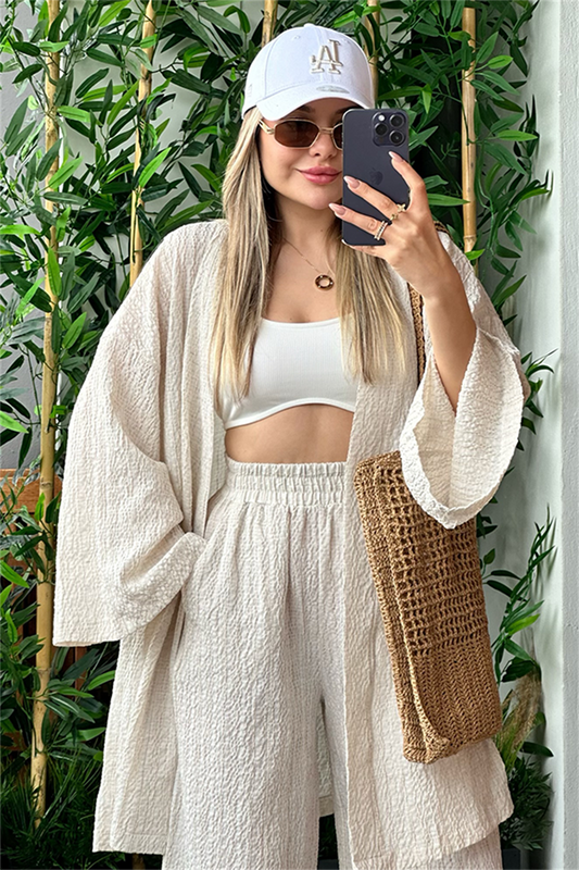 3 AL 2 ÖDEHavana kimonolu bohem takım - Krem