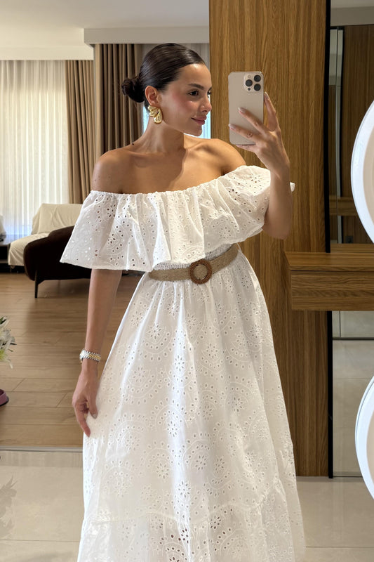3 AL 2 ÖDEHawea Beyaz Kemerli Fisto Elbise