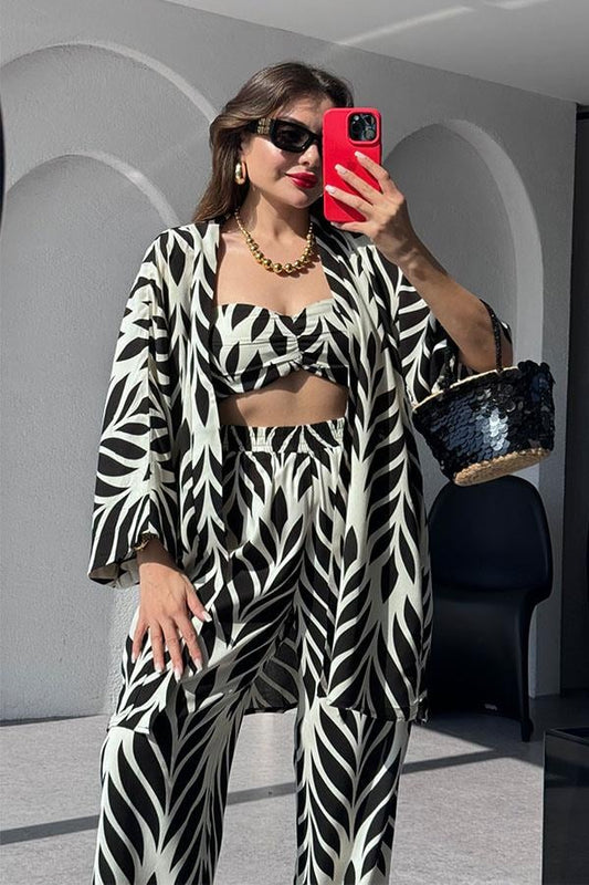3 AL 2 ÖDEHolana siyah beyaz desenli viskon 3 lü takım