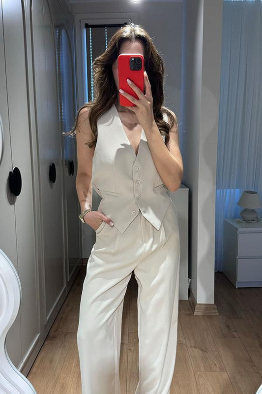 3 AL 2 ÖDEHoliday Yıkamalı Crop Pantolon Takım - Krem