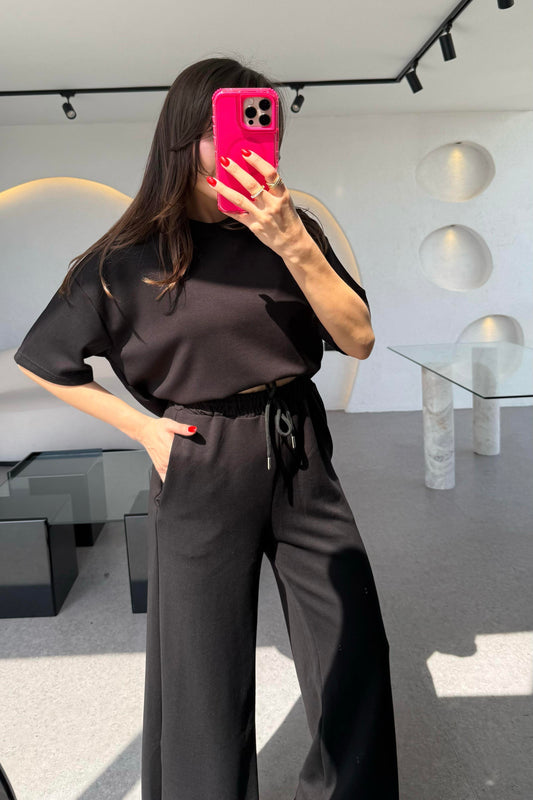 3 AL 2 ÖDEHudson Siyah Yarım Kollu Modal Takım