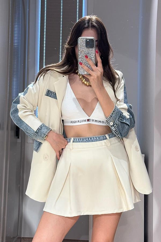 3 AL 2 ÖDEİclo Kot Karışım Ekru Blazer Ceket