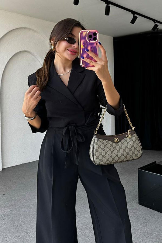 3 AL 2 ÖDEJair Siyah Bağlama Detaylı Blazer Takım