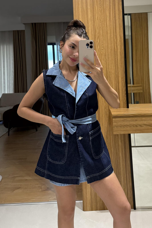 3 AL 2 ÖDEJames Mini Etekli Denim Yelek Takım