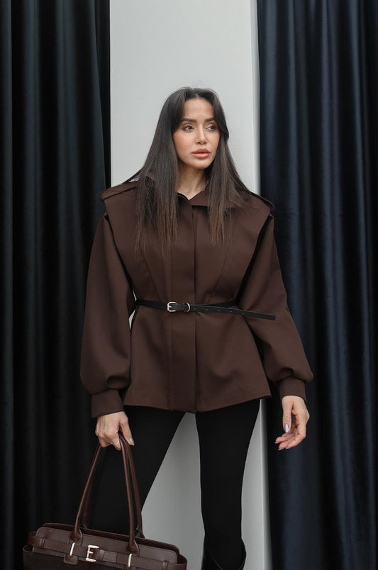 3 AL 2 ÖDEKAHVERENGI DACRE KEMER DETAYLI CEKET