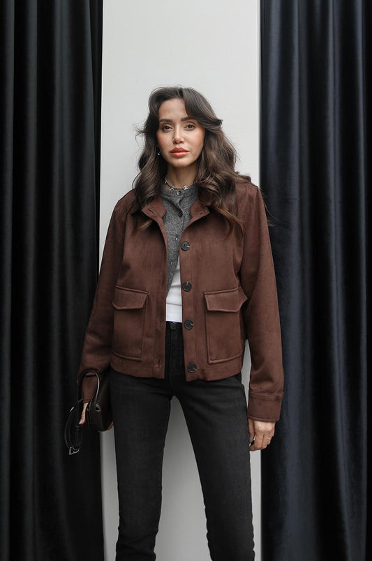 3 AL 2 ÖDEKAHVERENGI TISSUE KAPAK CEPLI SÜET CEKET