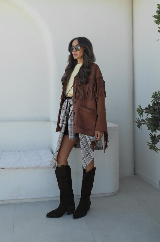 3 AL 2 ÖDEKAHVERENGI PÜSKÜLLÜ KOVBOY SÜET CEKET