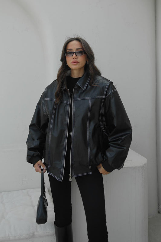 3 AL 2 ÖDESIYAH DIKIŞ DETAYLI ASTARLI DERI CEKET