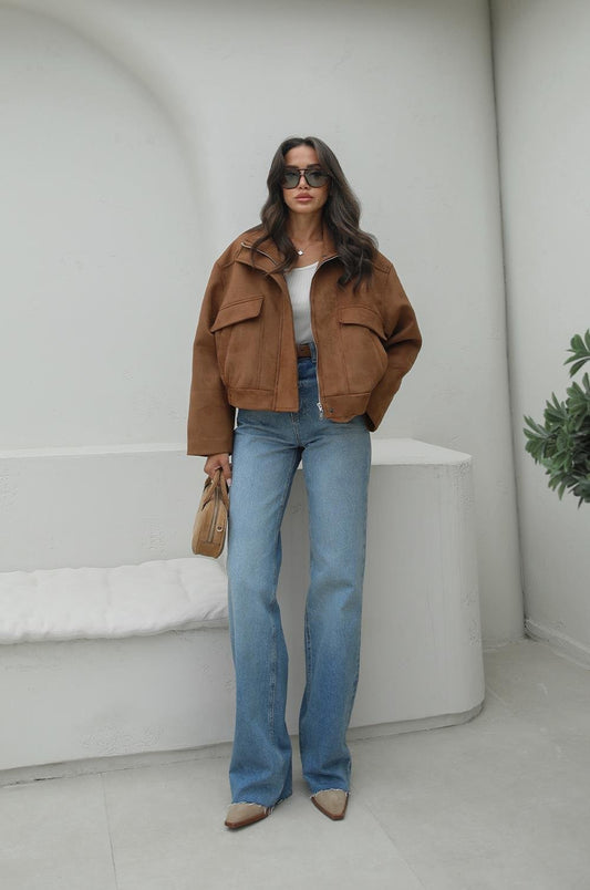 3 AL 2 ÖDEKAHVERENGI CEP DETAYLI SÜET BOMBER CEKET