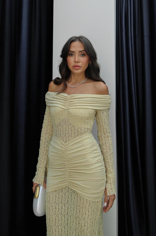 3 AL 2 ÖDEBEJ DANTEL DETAYLI MADONNA YAKA ELBISE