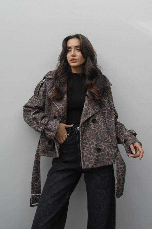 3 AL 2 ÖDEAÇIK KAHVE LEOPAR KEMERLI KISA KAŞE KABAN