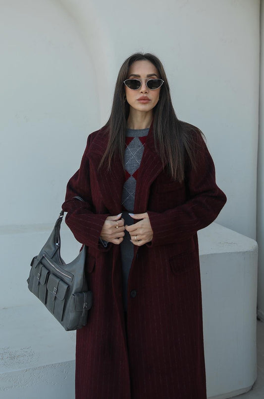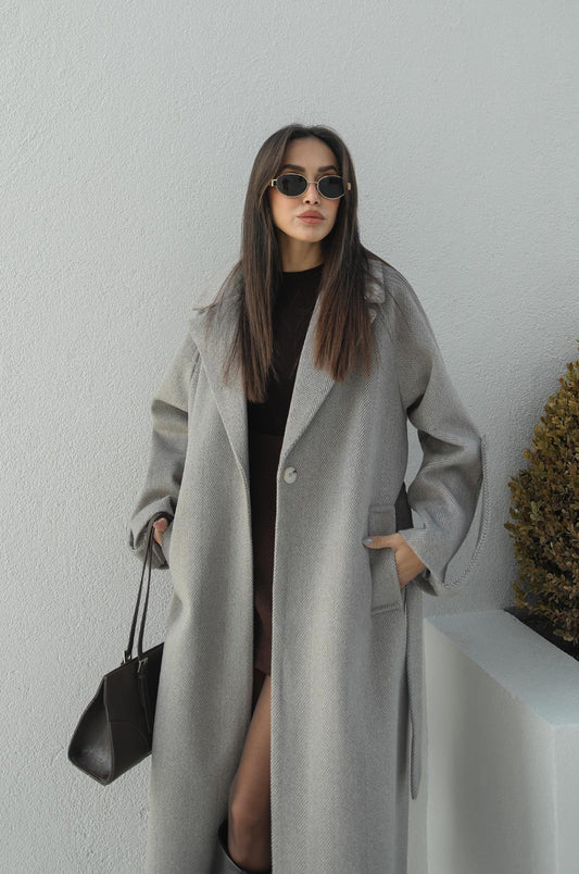 ACI KAHVE HILDA KOLLARI CEP DETAYLI KAŞE KABAN