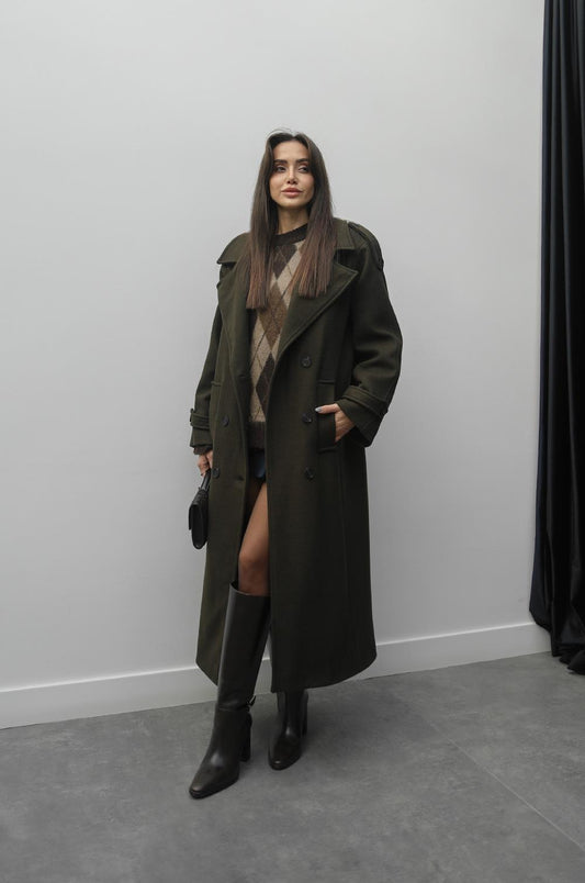 3 AL 2 ÖDEKOYU HAKI APOLET DETAYLI KUŞAKLI KABAN