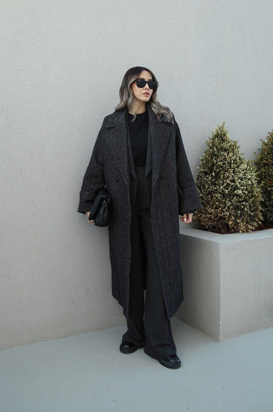 3 AL 2 ÖDEGRI SIYAH BALIKSIRTI DESENLI KABAN